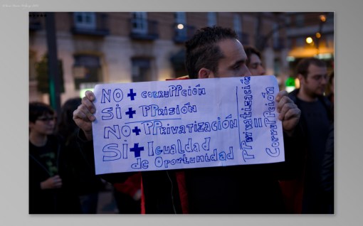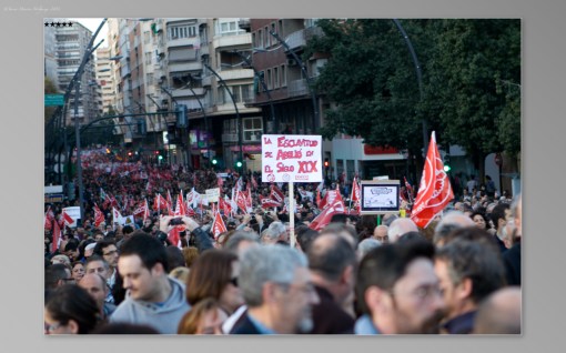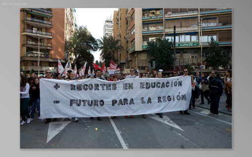 Los presupuestos de nuestra Comunidad autónoma para 2012, que la Asamblea Regional se propone aprobar el próximo 22 de diciembre, contemplan importantes reducciones del gasto social que inciden negativamente en la calidad de vida de todos los ciudadanos. Es necesario protestar ante la aprobación de unos presupuestos que menoscaban los servicios públicos y van a suponer un aumento de las deficiencias actuales de la educación pública en la Región de Murcia.