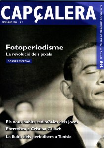 Ya he comentado en otras ocasiones que Capçalera es la revista oficial del Col.legi de Periodistes de Catalunya y suele publicar monográficos o dossieres muy interesantes. En el número de septiembre de 2010 hay uno que trata sobre Fotoperiodismo e Internet. Hay varios artículos. En el primero de Jordi Rovira titulado La revolución de los píxeles en la fotografía, aparezco yo.