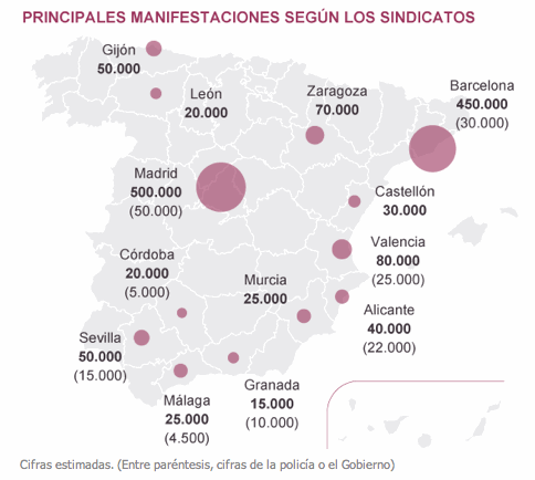 A pesar de la propaganda, de las mentiras sobre los sueldos de los liberados y del ataque permanente contra los sindicatos, las masivas manifestaciones de ayer fueron un éxito: cientos de miles de personas dejaron claro en la calle que no van a rendirse sin más, que no van a permitir en silencio que el Gobierno de Rajoy pisotee sus derechos. Desde el Partido Popular y sus medios afines ya están restando importancia a la protesta del domingo. Se equivocan. Si la primera gran movilización ciudadana contra el decretazo le parece al PP y a sus mariachis pequeña, irrelevante, irresponsable, rencorosa o trasnochada, que esperen unos cuantos meses. Bastará con que los verdaderos efectos de la reforma laboral se hagan patentes –más paro, despidos de oferta y sueldos aún más baratos– para que las protestas que vengan después hagan que el 19-F parezca una simple broma.
