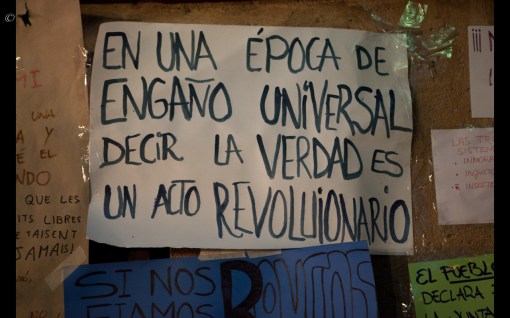 Hace poco escribía una amiga: “No nos temen porque saben que pensamos, y que, en consecuencia, todos tenemos opiniones diferentes”. Es cierto. Esto es un camino de no retorno, y solo parecen existir dos opciones: o el inacabable abanico de personalidades y opiniones acaba con nosotros, o consigue hacernos más fuertes,creando una unión, una base de pensamiento en la que todos coincidamos, y podamos reivindicar orgullosos. No permitamos a esos cínicos tener la razón.Estamos ahora tomando conciencia del poder del ciudadano que expresa sus ideas en el espacio público, que es nuestro, que siempre lo ha sido, pero que hasta hace poco lo habíamos olvidado. Somos los hijos de la democracia, esa de la que tanto nos han hablado, la del gobierno del pueblo; y estamos profundamente hartos de estar hartos. Sabemos del gran beneficio mutuo que puede conllevar el diálogo entre opiniones distintas, y aquí estamos, mostrándonos, sintiendo el placer de encontrar losargumentos de otros y también los nuestros propios. Entre nosotros, generaciones diferentes, pensamientos diferentes, colectivos diferentes, con, al menos, una cosa en común: Queremos una democracia palpable y real; y la manera de conseguirlo pasa por rescatar un